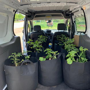 This year, we potted participants' locally grown seedlings (from Ripley Farm & Marr Pond Farm) into the 15-gallon containers ourselves, and delivered them right to their homes. We wish that the gardeners were able to do this themselves, with the help of the Garden Coaches, but we are adapting to a socially-distanced reality to keep our community safe and healthy. Garden coaches are still available by phone for questions, and we have high hopes of bountiful harvests for the gardeners!